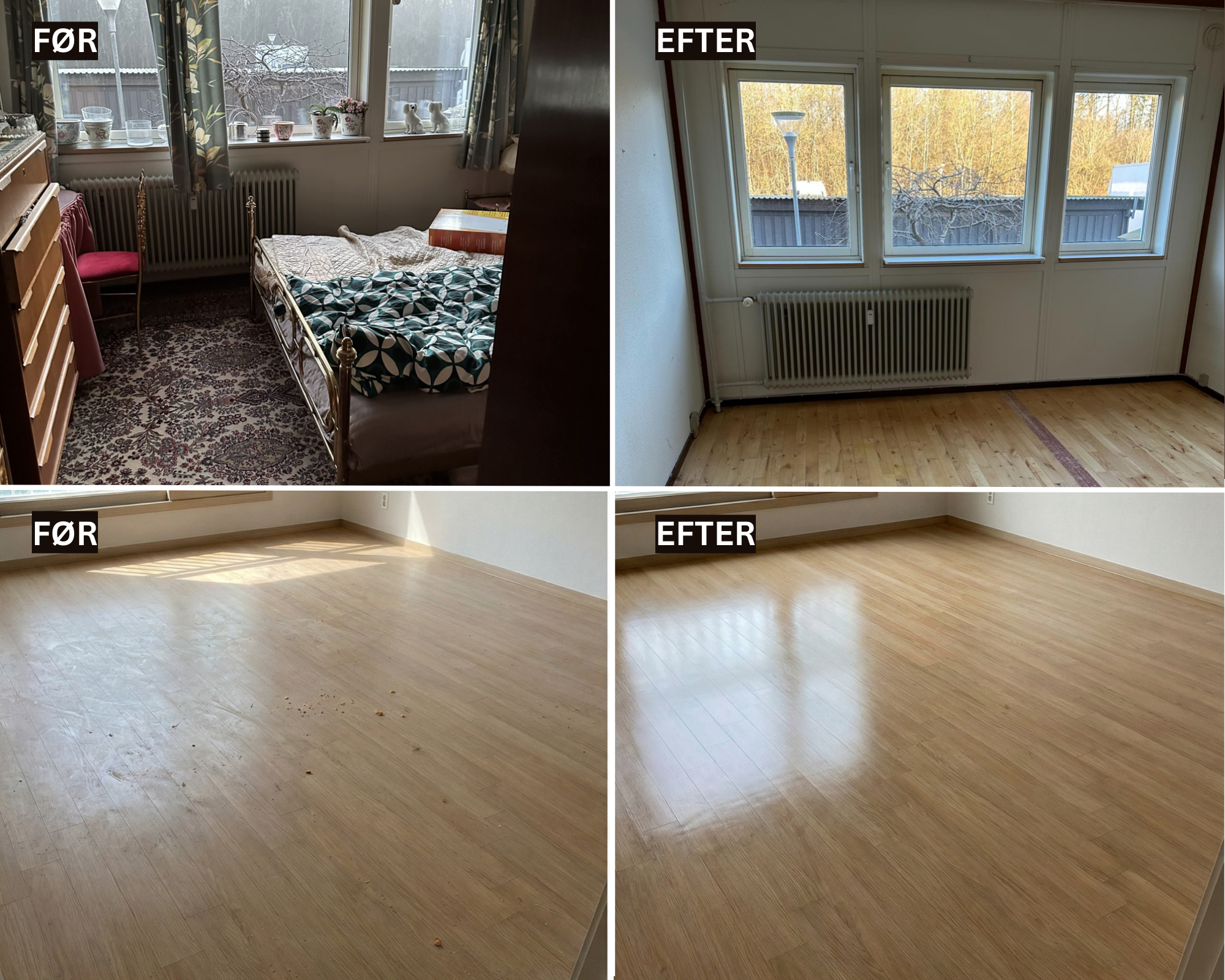 Vi tilbyder også rengøring af boligen som en tilvalgsservice. Ønsker du dette, giver vi gerne et separat og uforpligtende tilbud.